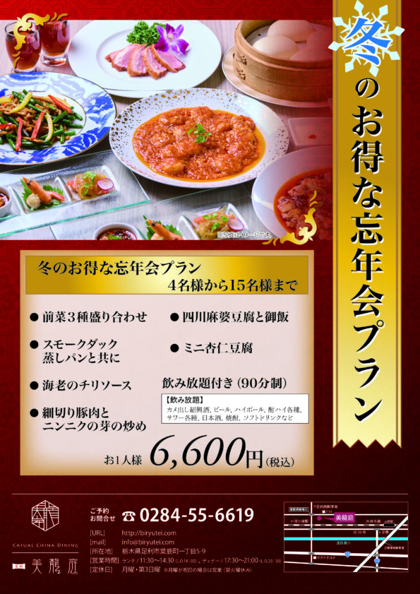 お知らせ 2025 忘年会プラン 2025.10.10 忘年会プランご予約承り中。 (12月下旬頃までの期間限定プランです。) Tweet Share Hatena Pocket この記事のタイトルとURLをコピーする 10月の営業日程 前の記事 年越し中華オードブルご予約受付開始 次の記事