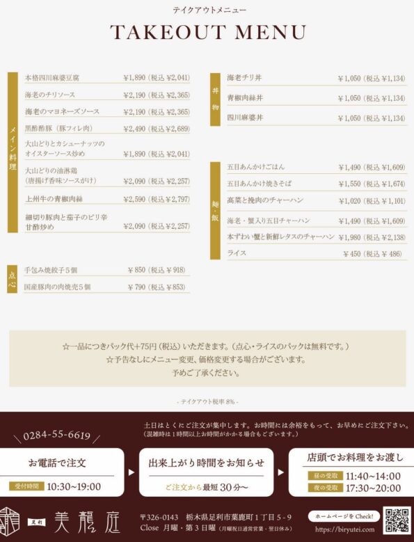 最新テイクアウトメニュー